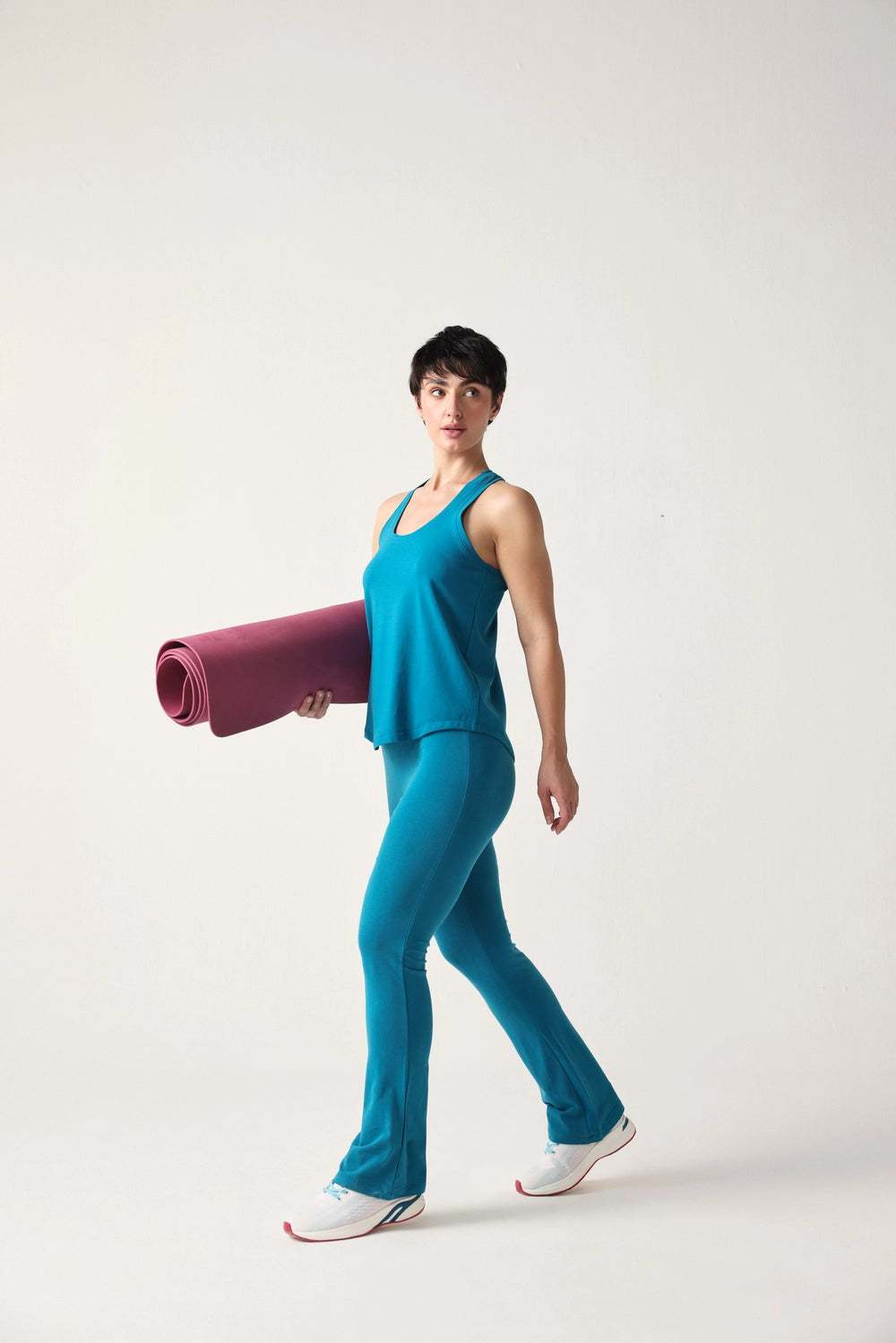 Many of our yoga pieces are made with eco-conscious materials like recycled nylon and low-impact dyes, in facilities that support ethical production practices.